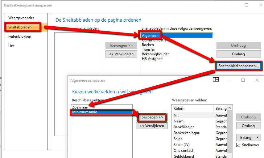 Hoog in het sneltabblad Algemeen de bedrag op bij het veld mimimumsaldo